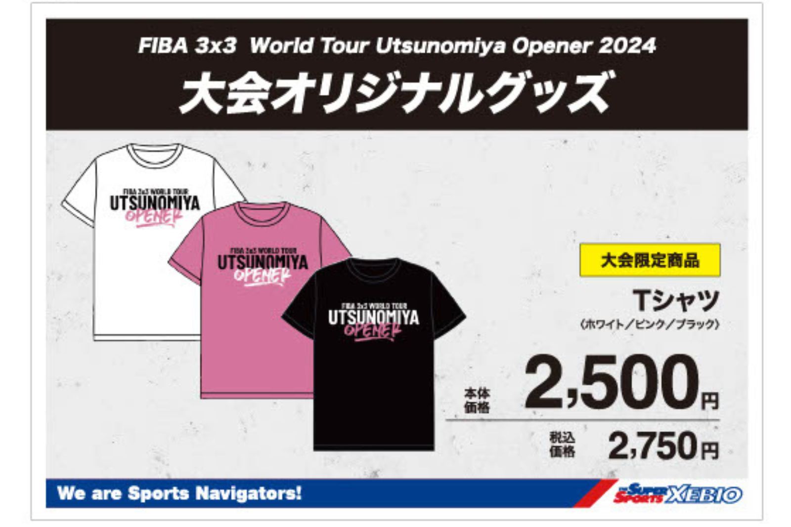 2024.04.22「FIBA 3×3 UTSUNOMIYA OPENER 2024」公式グッズの販売が決定いたしましたのでお知らせいたします。大会期間中、会場内のスーパースポーツゼビオの販売ブースにて販売いたします。